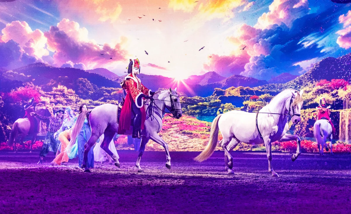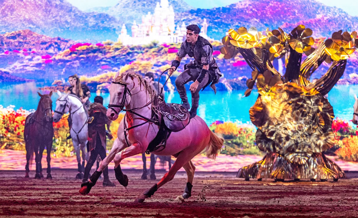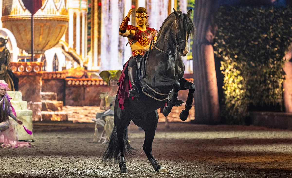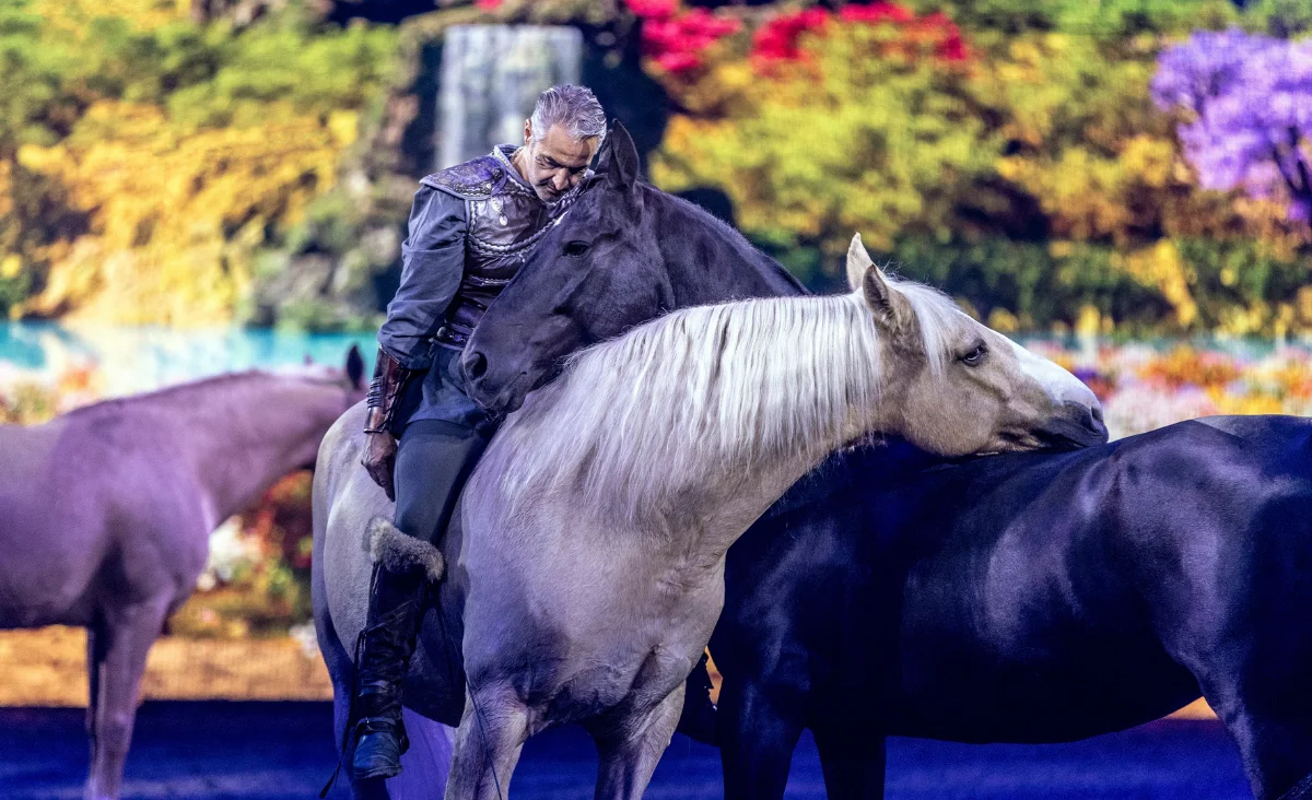 Begleitet von 56 edlen Pferden, brillanten Reitern, Tänzern und eindrucksvollen Effekten entsteht ein mitreißendes Erlebnis voller Schönheit, Mut und Poesie. Eine Show, die Herzen berührt und Fantasie lebendig werden lässt.